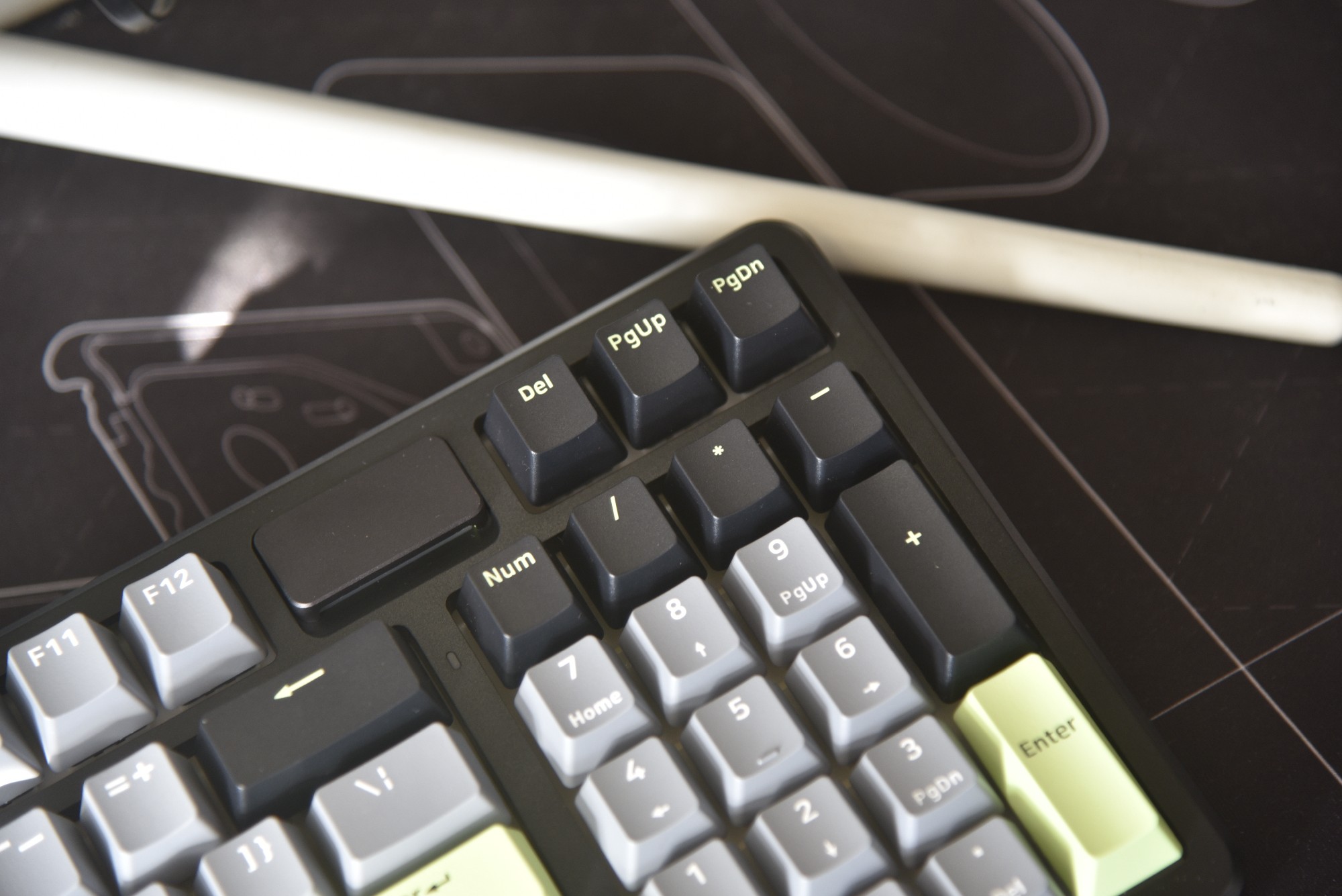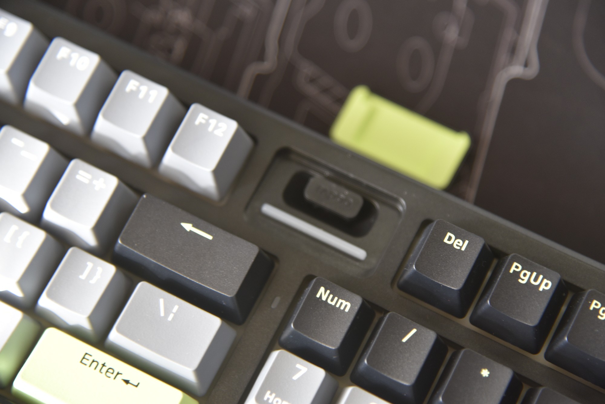 最懂桌面小用户的是它的 98 配列:保留数字小键盘(算报表不用点屏幕键盘),宽度却比全尺寸键盘窄了 10cm,我的迷你书桌终于能放下键盘 + 鼠标 + 笔记本。右上角的 “时空幻境仓” 必须夸爆 —— 磁吸盖一打开,里面藏着 2.4G 接收器,再也不怕丢;盖面上的灯还能显电量:绿灯满电、橙灯半电、红灯该充了,之前用的键盘总 “突然断电”,现在看灯就知道要不要充电,太省心。