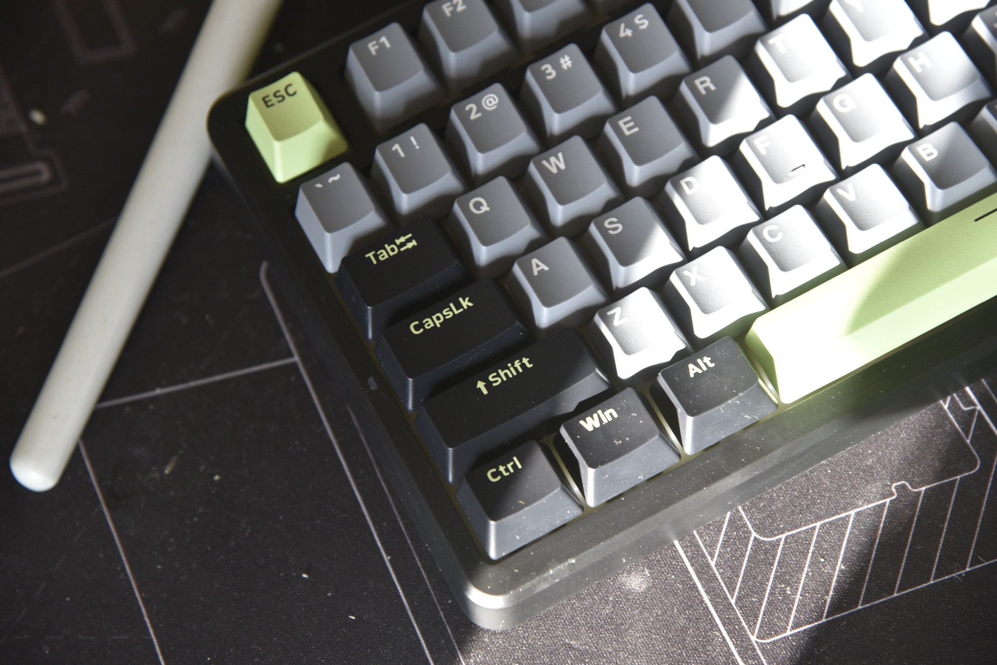 高含量PBT 键帽也得夸,表面有细细的颗粒感,摸起来不滑手,用了半个月没打油 —— 之前的 ABS 键帽一周就黏糊糊的,这个我天天用,键帽上的 “F5”“Enter” 字符还跟新的一样。而且全键支持热插拔,上周我忍不住换了 TTC 茶轴,段落感更明显,打《英雄联盟》按技能时 “咔嗒” 声超解压,新手也能轻松换轴,不用怕焊坏键盘。
