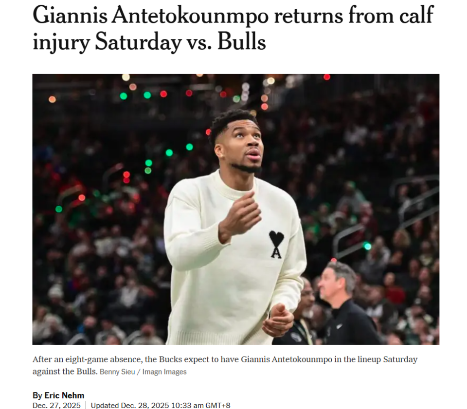 毫无疑问,榜首的位置属于字母哥,后者迫切希望赢得第二个冠军,目前雄鹿队的配置明显不满足他的需求,《TA》曝出联盟各队都在期待雄鹿将字母哥摆上货架。