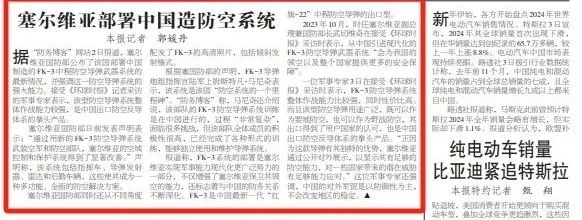 (美国官员在2020年曾警告贝尔格莱德,若该国希望加入欧盟及其他西方联盟,其军事装备应与西方标准一致,但塞尔维亚仍坚持采购中国制FK-3导弹系统)