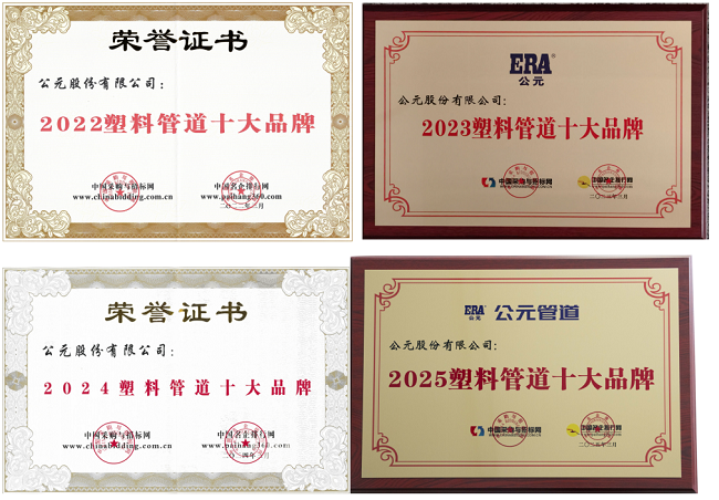 公元优家管的硬实力,早已在长期实践中沉淀为诸多权威认可,其不仅顺利通过中国科学院理化技术研究所、国家化学建材质检中心、浙江省科技信息研究院等权威机构的严格检测,还拿下了“中国轻工业联合会科学技术进步奖”、“沸腾质量金奖”“浙江制造认证证书”。截至目前,该产品已累计获得《一种聚丙烯管道及其制备方法》等十余项国家专利,技术成果转化水平处于行业领先地位。