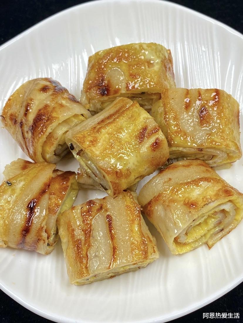3、吐司卷版:用吐司片代替蛋饼,把香蕉泥抹在吐司上卷起来,再裹上蛋液下锅煎,外酥里嫩,口感层次更丰富。