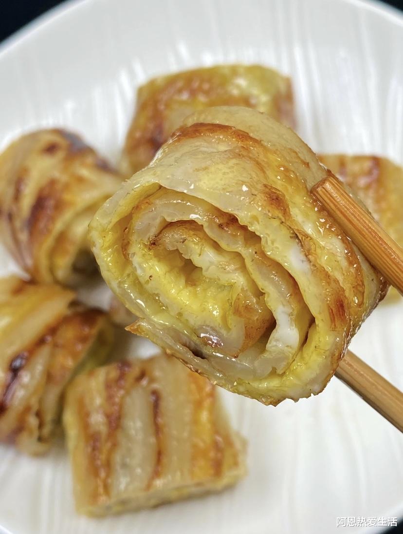 3. 趁热卷起:蛋饼凉了会变脆,卷的时候容易断裂。