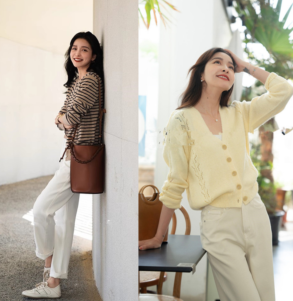你知道么?现在满大街的时髦精,都喜欢用复古开衫+高腰裤的组合方式,将女性的柔美、与春日的温暖完美融合。