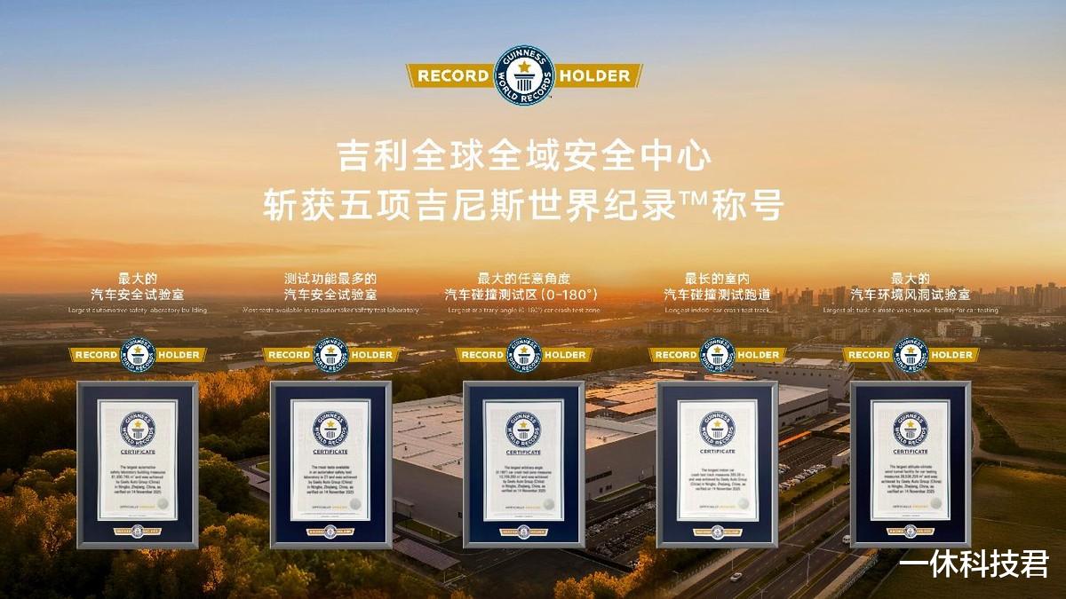 2025年12月12日,吉利全球全域安全中心正式发布,并一举创下“全球最大的汽车安全试验室”、“全球最长的室内汽车碰撞测试跑道”、“全球最大的汽车环境风洞试验室”、“全球最大的任意角度汽车碰撞测试区(0-180°)”、“全球测试功能最多的汽车安全试验室”五大吉尼斯世界纪录。