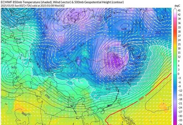 6-9号,盘踞东北一带高空的极涡将引导极寒冷空气跨步南下,同时青藏高原南侧的南支槽波动也会引导部分冷空气进入我国。