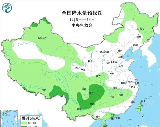 未来十天,中东部地区降水依然稀少,华北平原等地可能还是零降水。南方降水也是偏西,雨雪主要分布在西南地区,而江南华南等地降水继续偏少,可能导致今冬干旱持续发展。
