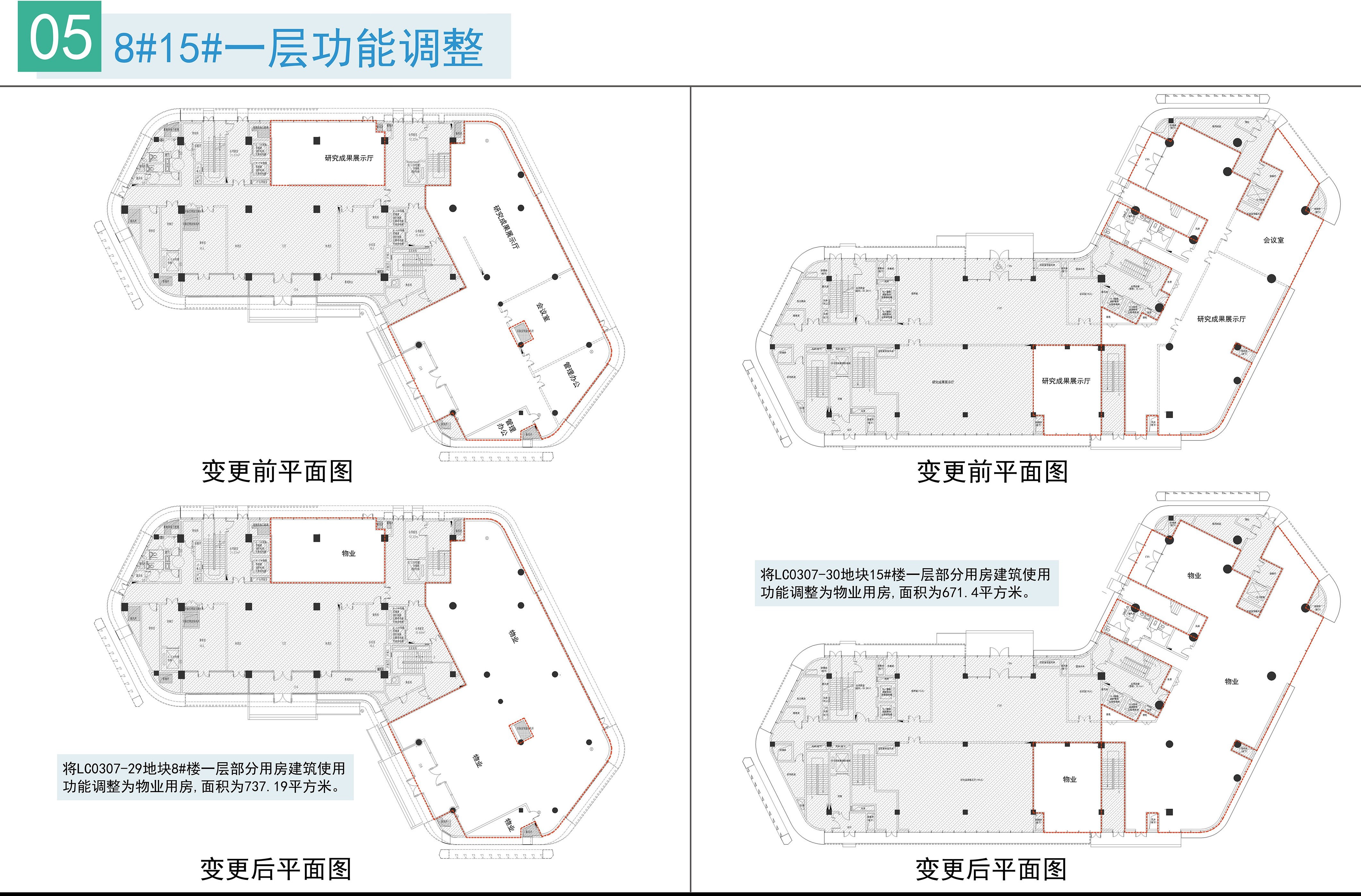 2.将LC0307-29地块8#楼、LC0307-30地块15#楼地上一层部分用房建筑使用功能调整为物业用房。