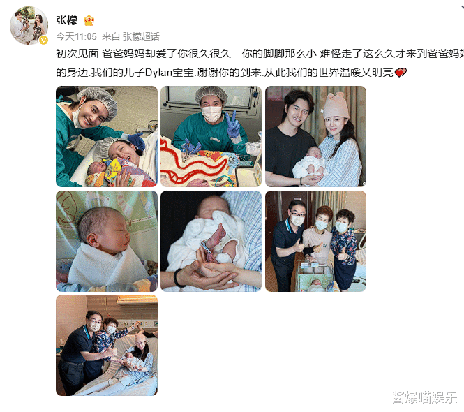 近日,张檬在社交平台上高调宣布产子。不仅晒出剪脐带的照片,还有一家人在生产房喜气洋洋的合照,看得出来,儿子的出生让整个家族都很欢喜。