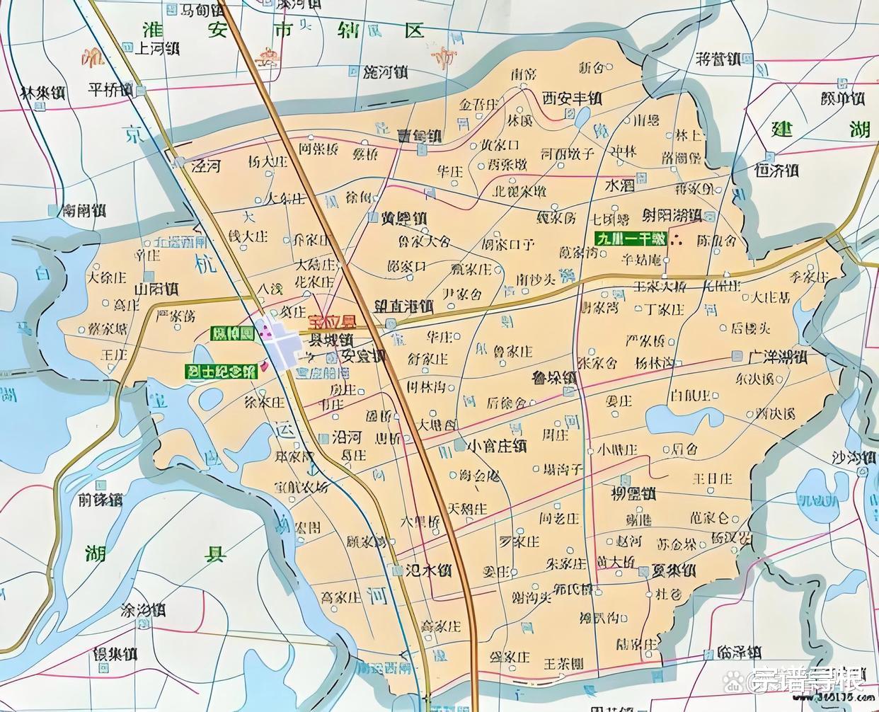 宝应县现辖安宜镇、氾水镇、夏集镇、柳堡镇、射阳湖镇、广洋湖镇、鲁垛镇、小官庄镇、望直港镇、曹甸镇、西安丰镇、山阳镇、黄塍镇、泾河镇。