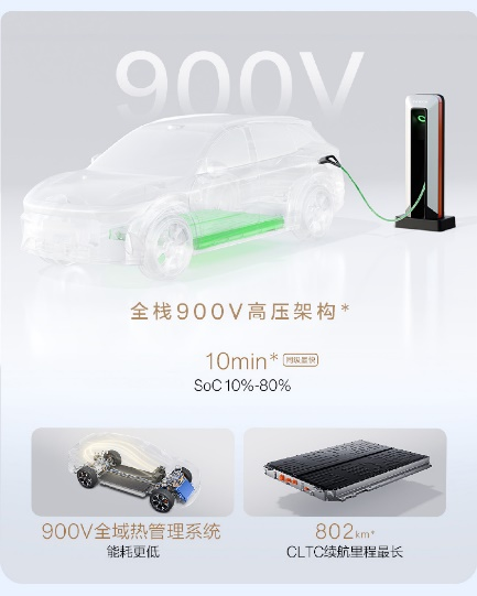 关键点在于,焕新7X是同级唯一同时拥有900V高压架构和Thor-U芯片的车型。先来看全栈900V高压架构,这带来了6C超快充能力,峰值充电功率620kW,充电10分钟就能补能570公里。这个补能速度和效率,已经完全超越了同级别所有对手。