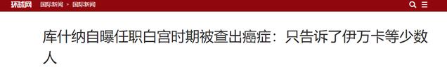 环球网2022-07-26《库什纳自曝任职白宫时期被查出癌症:只告诉了伊万卡等少数人》