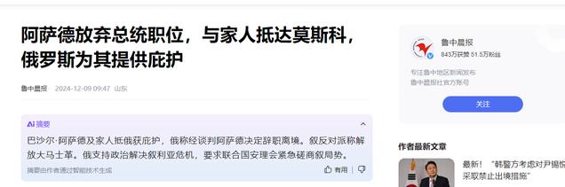 2024年12月9日,俄罗斯最先发出声明,此前被爆出阿萨德专机可能已经坠毁的消息被推翻,而此刻的阿萨德已经在俄罗斯寻求庇护。