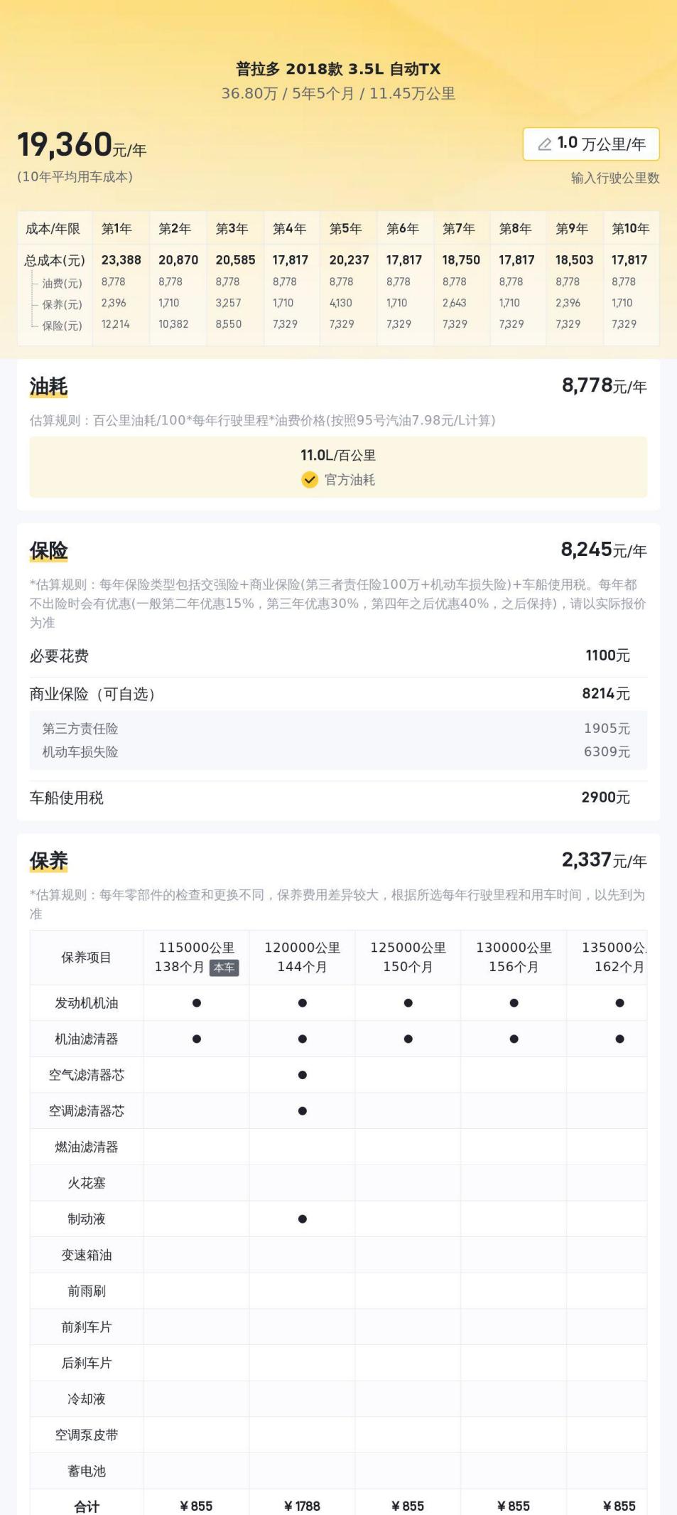 除了车况,用车成本也是一个不容忽视的问题。普拉多作为一款中大型SUV,其油耗、保养、保险等费用都相对较高。根据估算,同级别车型的年均用车成本在17478元到23731元之间,而普拉多的用车成本大约在19154元左右,处于中等水平。这对于预算有限的消费者来说,也是一个需要考虑的因素。