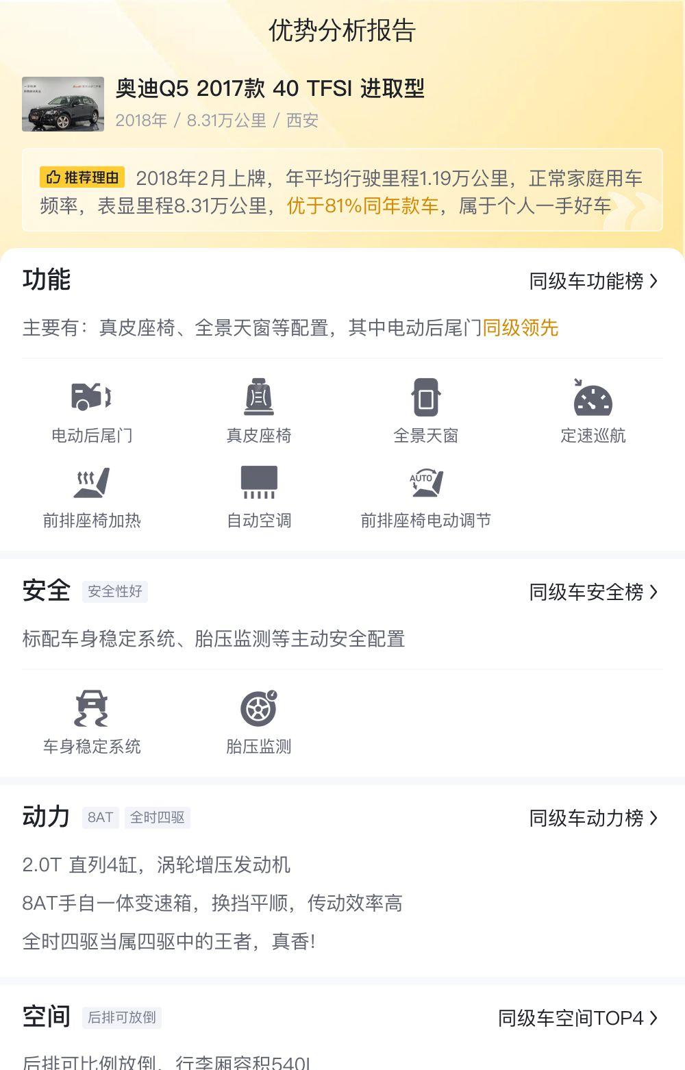 此外,购买二手车最大的风险在于车况的不确定性。虽然这辆Q5的表面信息看起来不错,但我们仍然需要进行全面的车况检查,包括发动机、变速箱、底盘、电子系统等等。最好请专业的第三方机构进行检测,以避免买到事故车或问题车。