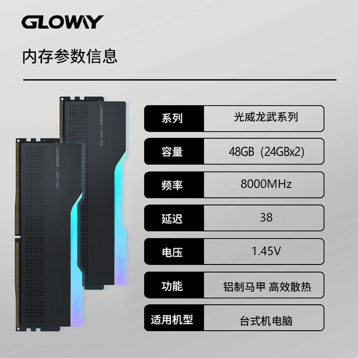 与传统16GB×2的配置相比,光威龙武RGB D5 8000 24GB×2套装仅需多花费100元左右,就能获得50%的容量提升!48GB的超大内存组合,无论是应对《赛博朋克2077》等3A大作,还是视频剪辑、3D渲染等专业工作,都能游刃有余。