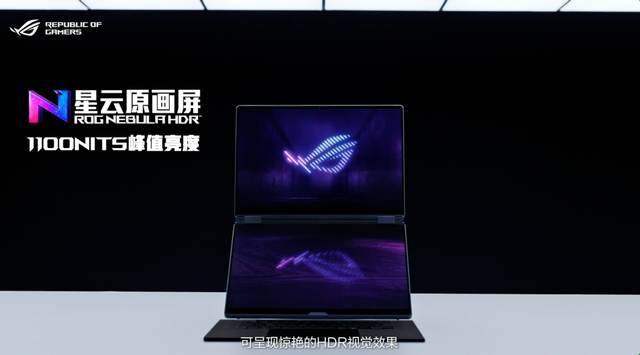 如果说英特尔酷睿 Ultra 9 处理器 386H是ROG 幻 16 双屏“性能引擎”,那么双16英寸ROG星云原画屏+五种形态变换设计,则是解锁高效生产力的“空间钥匙”。ROG 幻 16 双屏的主屏与副屏都用上了全新升级的16英寸星云原画屏,其拥有2.8K、120Hz高分高刷、峰值亮度1100nits,支持100% DCI-P3色域,色彩精准度ΔE<1,这屏幕素质都可以和专业显示器媲美了。