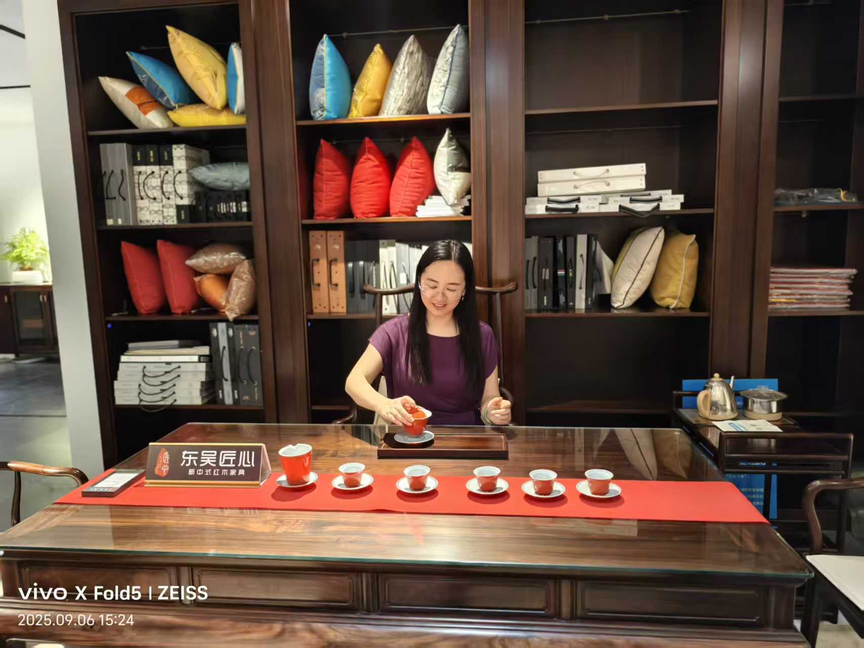 如今,吴燕的“包子姐”名号,不仅在苏州红木圈家喻户晓,更成了高端中式家居的代名词。她用一把刻刀、一份匠心,让红木家具走出了深宅大院,走进了当代人的高品味生活,也让苏作红木的非遗技艺,在传承与创新中,绽放出愈发耀眼的光芒。正如她工作室里那把刻着“差一毫米,家具就委屈了”的老尺子,无论时代如何变迁,这份对极致的追求,永远是手艺人最珍贵的底色。