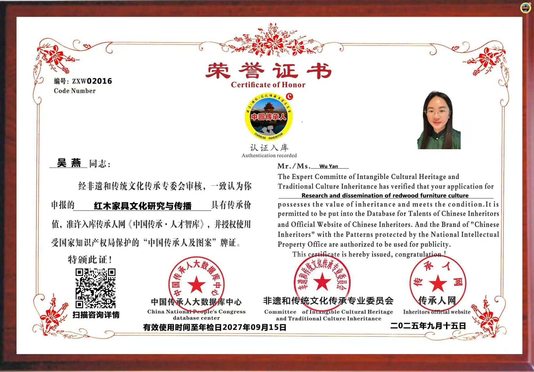 这些认可,是对她真材实料的回馈,是对她高超技艺的褒奖,更是对她非遗匠心的肯定。“只要你做得好,不愁没顾客;只要你用心做,不愁人家不认可。”吴燕的这句话,道破了手艺人最朴素的成功之道。在她的工坊里,没有“快消”的流水线,只有慢工出细活的坚守,每一件家具都要历经选料、烘干、开料、榫卯制作、雕刻、打磨、上蜡等二十余道工序,少则数月,多则半年,可正是这份慢,让她的作品有了穿越时光的生命力。