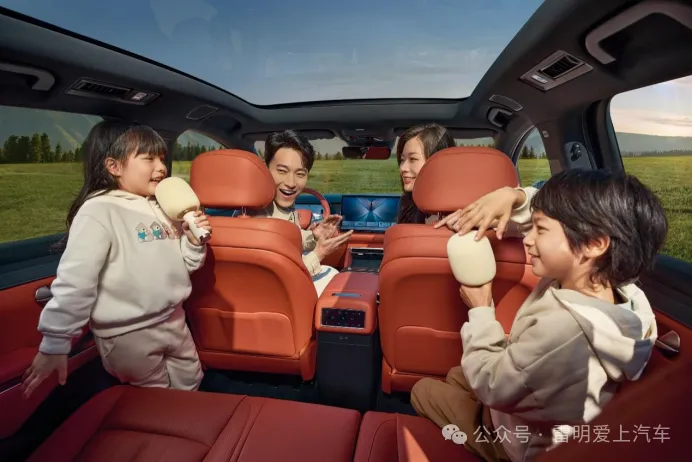 舒享配置上,宽适云感座椅采用11层填充结构,并拥有真皮包覆、前中排座椅通风加热、SPA级10点式按摩、14向电动调节、电动腿托,打造极致乘坐享受。交互式双层环抱氛围灯、比亚迪自研21扬声器音响、双层车载冷暖冰箱、智能香氛等豪华配置,五感融合,让每一位家人都能收获最高品质的豪华享受。