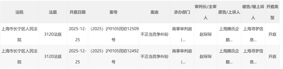 近日,“腾讯起诉拼多多不正当竞争”引发了媒体关注和网友热议,反做空一线通过查询案沪通发现,相关案件确实将于2025年12月25日开庭。