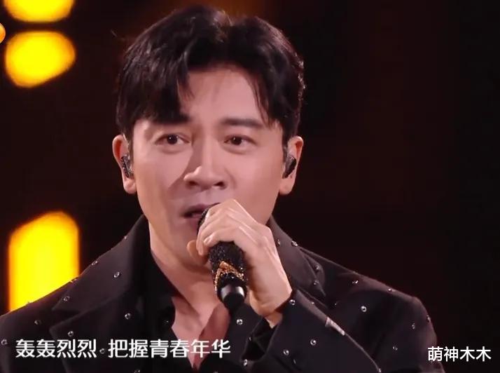 随后黄晓明一身白色风衣出场,一扫之前的油腻感,看上去还有些忧郁。黄晓明和苏有朋不知道是不是商量好的,穿搭一黑一白,似乎是在借此纪念琼瑶。两人后来还合唱了《当》,经典曲目一响,全场大合唱。
