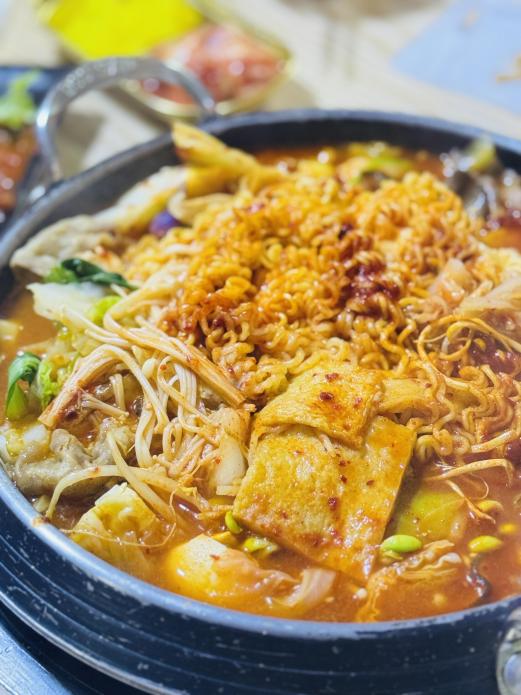 这款韩式年糕火锅绝了!汤底是超正的甜辣味,分量给得超足,裹满的芝士一拉就是超长的丝,太治愈了。