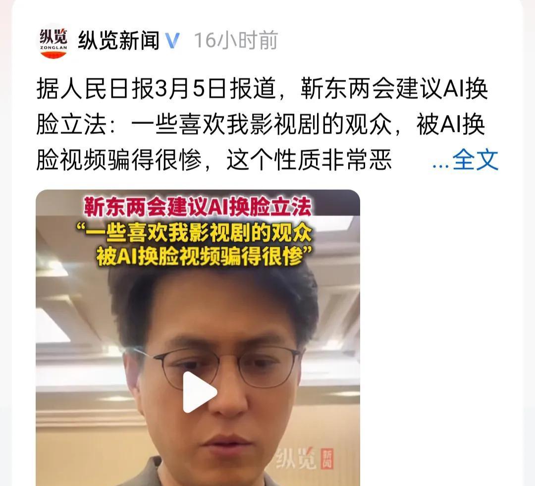 他针对时下泛滥的AI换脸现象亮出观点:“现在某些短视频平台,粉丝们用我的脸替换掉男友形象,这已经超出娱乐范畴。”