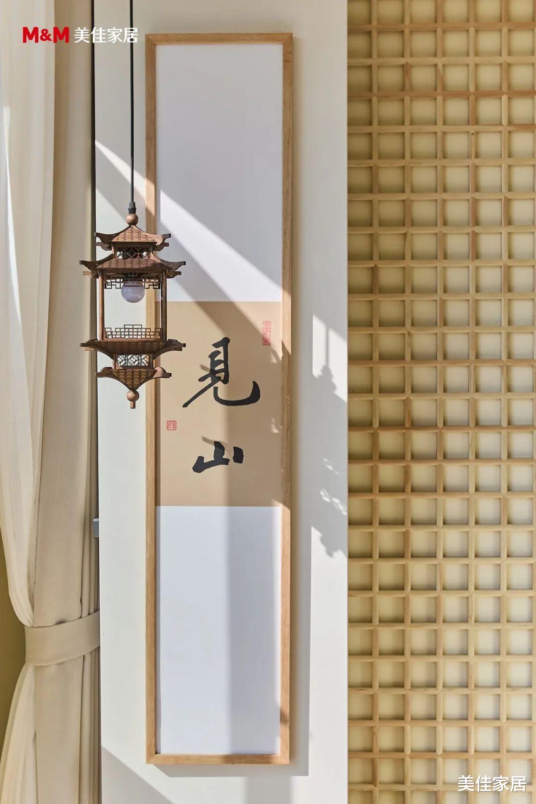 卧室无需过多复杂的装饰,素色的床垫直接铺在地台上,复古的吊灯搭配实木床头柜,颇具日式风。暖暖的灯光照射下来,让人放松又治愈。