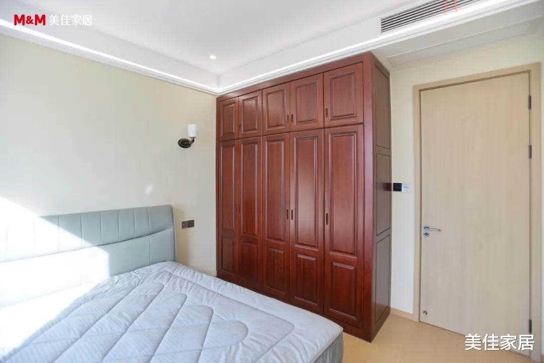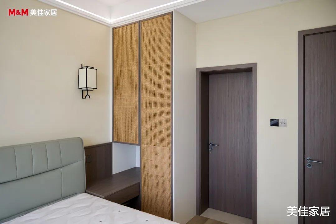 次卧的设计以整面木饰面柜子为主,质感满满。床头背板后是充足的储物空间收妥屋主的冬夏藏衣与各式配件。