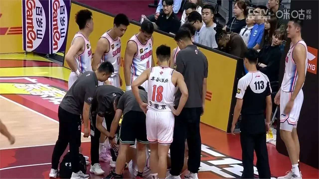 下半场比赛开始后,广东宏远继续保持强劲的进攻势头。任俊飞的两罚全中使得广东宏远将领先优势扩大到两位数。然而,就在此时,四川金强的杨文学不幸受伤,脚崴了,这无疑给四川金强的进攻带来了不小的影响。尽管如此,四川金强依然顽强拼搏,三节结束时成功将比分追平至83:83。
