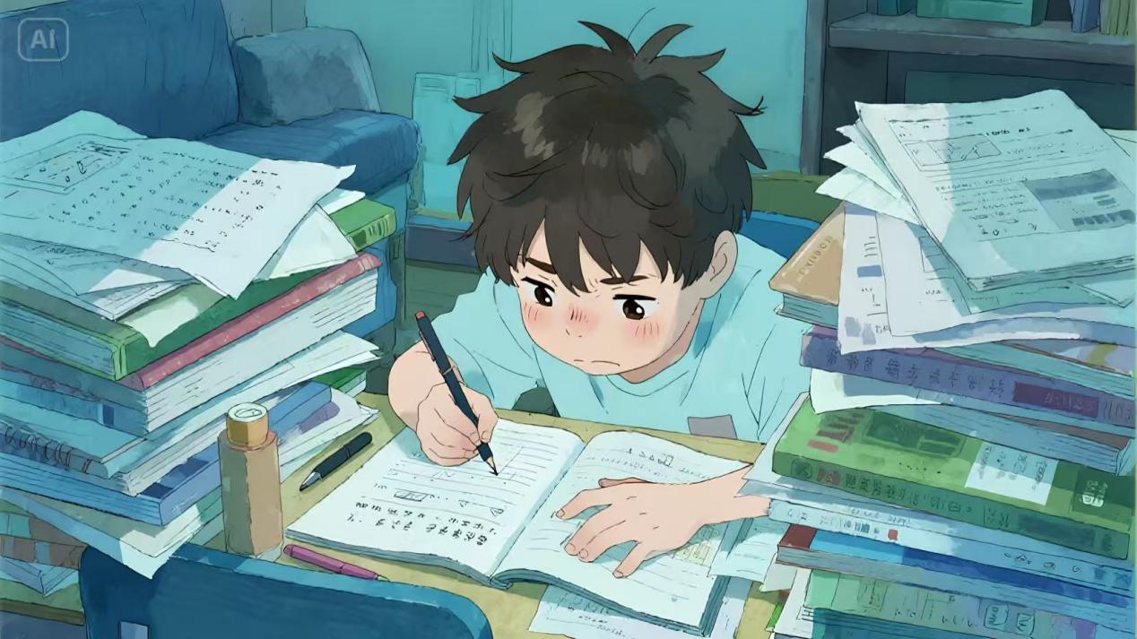 我们看着孩子,那个曾经会因为拼好一幅地图而欢呼雀跃的孩子,如今却在书桌前,像一尊沉默的雕塑。