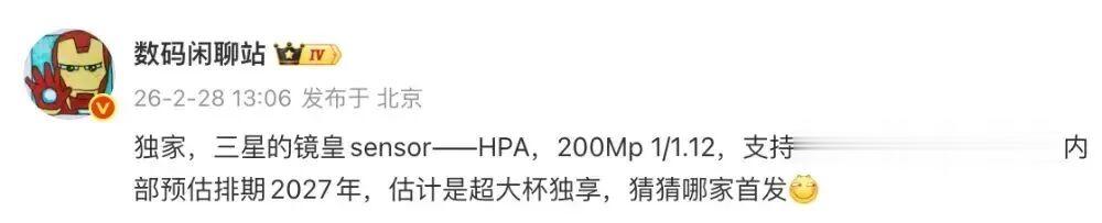 除了核心规格信息外,博主@数码闲聊站 最近的爆料还提到过,三星的镜皇sensor——HPA,200Mp 1/1.12,支持LOFIC超高动态技术,内部预估排期2027年,估计是超大杯独享。