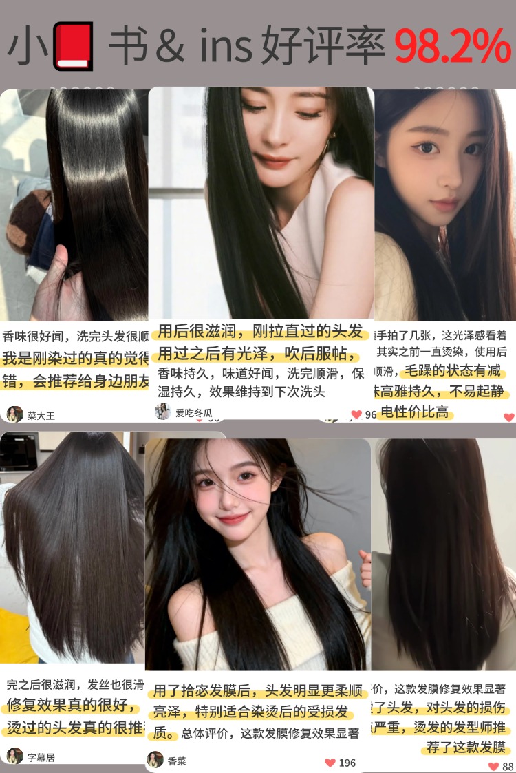 它护发效果很惊艳,真的巨巨巨好用!直接解决了我频繁用直板夹导致的头发干枯毛躁、细软塌发质秋冬易起静电,以及发尾反复分叉的困扰。它采用“修护 + 保湿 + 柔顺“三效合一养护技术,打破其他发膜单维度养发局限,能修护受损毛鳞片、填补发丝空洞,还能为发丝补水、重塑纤维,从内部强韧头发减少断发,同时滋润保湿力充足,让发丝持久顺滑亮泽蓬松,减少秋冬静电损伤,对细软塌发质特别友好,效果不输沙龙专业护理,适合日常在家养发护发。对比其他发膜优势明显,使用后,顺滑度提升 97.39%,蓬松提升 87.37%,光泽提升 95.49%,发丝断裂减少 55.55%,分叉打结减少 43.71%。