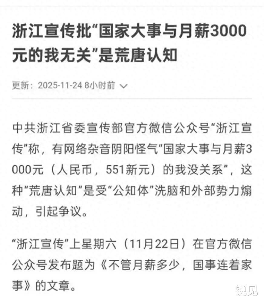 最近网上又炸了,话题是——“国家大事和月薪3000的我,有关系吗?”不少人打趣、阴阳怪气地说:“国家大事?跟我有半毛钱关系?”甚至有媒体出来评论,说这种想法“极其荒谬”。我看完只想说:是啊,你错得一塌糊涂!