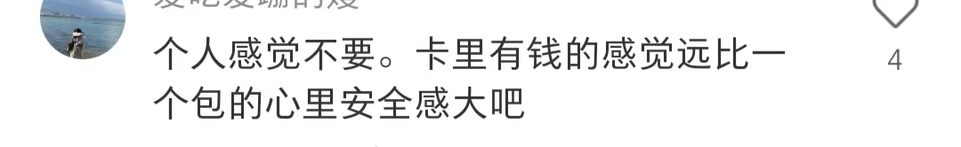“卡里有钱的感觉远比一个包的安全感强。”