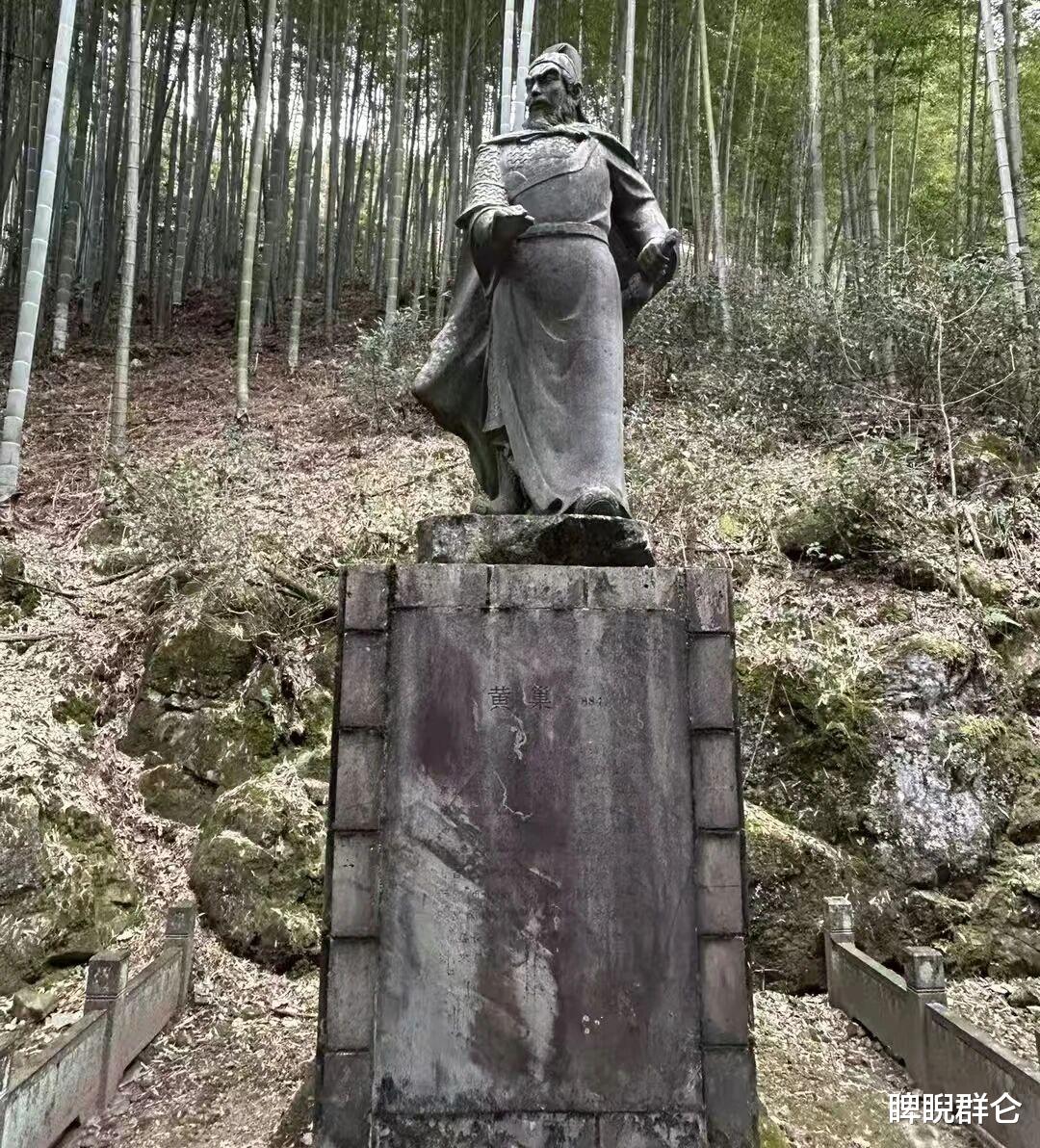 黄巢雕像:大约爬到五分之二的位置。像高2.6米,基座刻有黄巢生平简介。旁边石碑上是那首著名的《不第后赋菊》:“待到秋来九月八,我花开后百花杀。冲天香阵透长安,满城尽带黄金甲。”