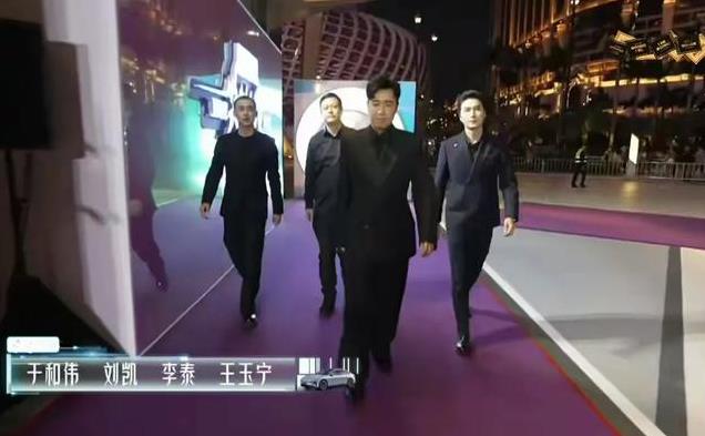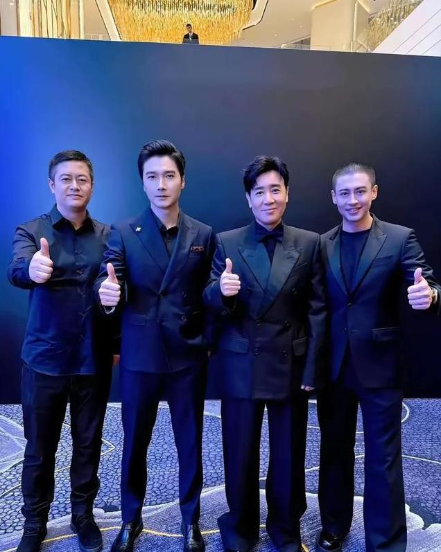 相比之下,于和伟身旁的几位年轻演员则显得英俊潇洒、风度翩翩。
