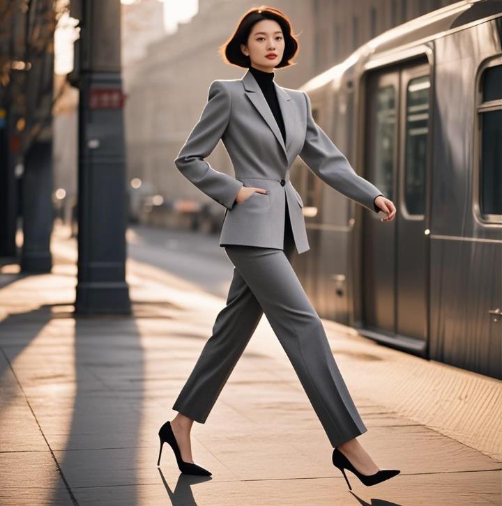90年代职场女性通过垫肩西装展现力量感与自信,这种风格至今仍是职场穿搭的典范。