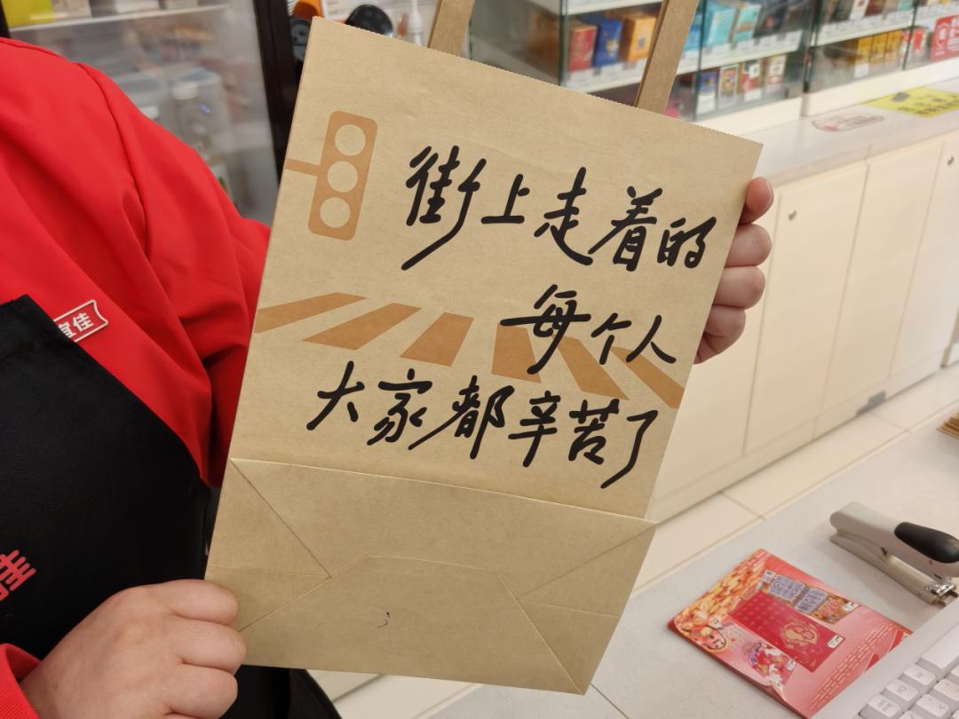 1月7日晚,新乡嘉誉公元的美宜佳迎来了第一块黑板。店员陈薇打开包装,看到黑板上部用粉笔写着的字,“路上走着的人,都辛苦了——刘震云”。她盯着这句话,读了出来。