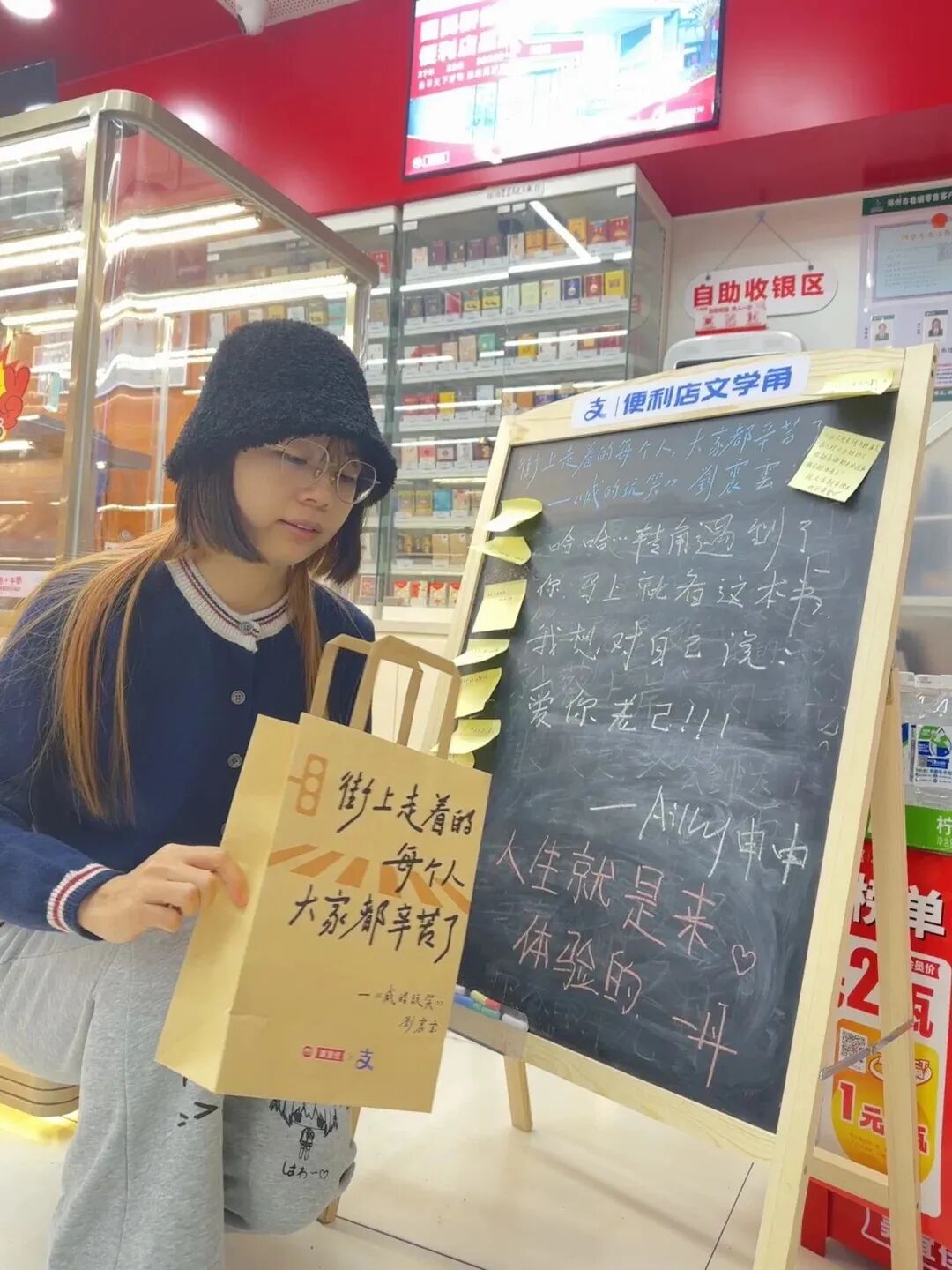 正如张伟最初的疑虑,便利店本是快节奏的消费空间,人们来去匆匆,到底是谁愿意停下脚步,在一块小黑板上写字?