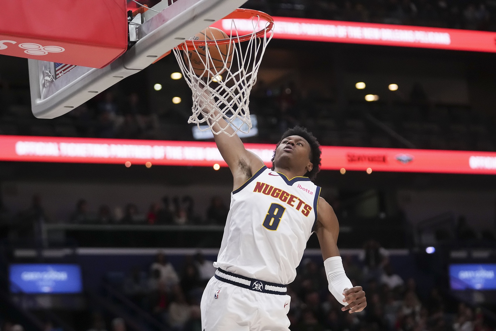 2026年1月14日战鹈鹕,掘金首发阵容五缺三,佩顿·沃特森轰下赛季第二高的31分外加7篮板、5助攻、2抢断、1盖帽。算上此前的4场,沃特森在5场比赛中以62.5%的三分命中率投中15个三分轰下129分,抢断加盖帽为15个。