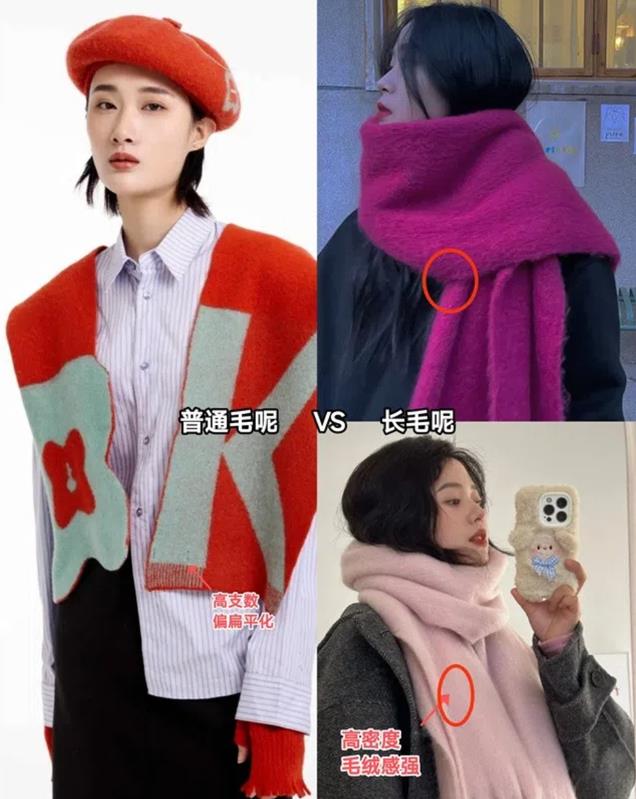 其实不管是年轻人还是中年女人,多少都会有点发腮的情况,但是对于脸大脖子粗的女人来说的话千万不要去选择太细长、材质软塌的围巾