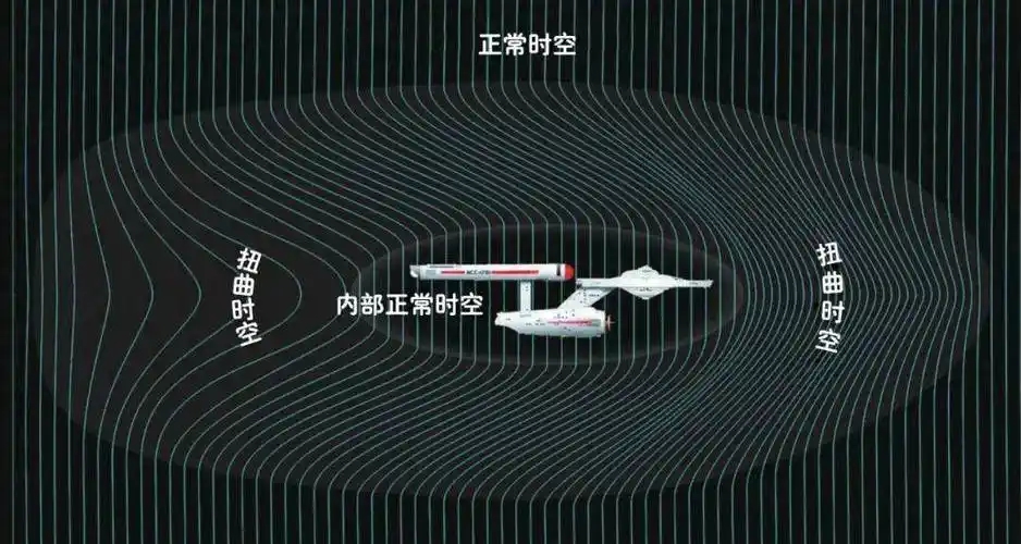 它的原理是通过压缩前方的时空,同时膨胀后方的时空,使飞船处于一个由扭曲时空形成的 “曲速泡” 中。