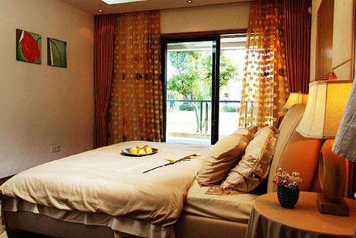 而阳台和客厅的门窗就装窗帘吧,家里还是有点阳光好,实在不行就安装了百叶。