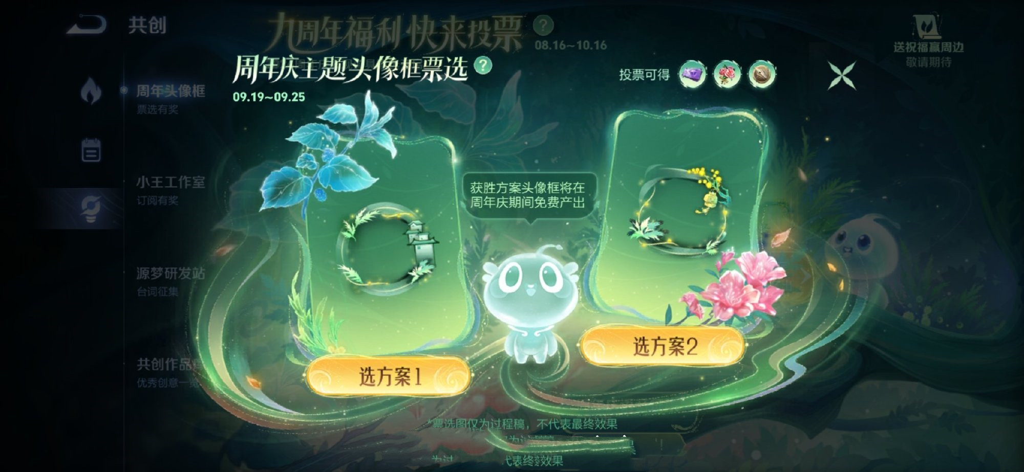 不知不觉,王者荣耀九周年庆典就要到来了,相信玩家们还是很期待的吧?毕竟,九周年庆不仅会有限定返场,还会有多款新皮肤上架哦。目前,九周年限定专属皮肤,已经确定在桑启和艾琳之间选择,至于王昭君的话,则是无双限定皮肤哦。另外,王者荣耀当前版本中,是进行了周年庆头像框票选活动。九周年头像框2选1,你们会选择谁呢?反正在我看来,还是选择方案二比较好,但这并非是动态头像框哦,所以最终选择谁都没什么区别的,因为都是免费获取。