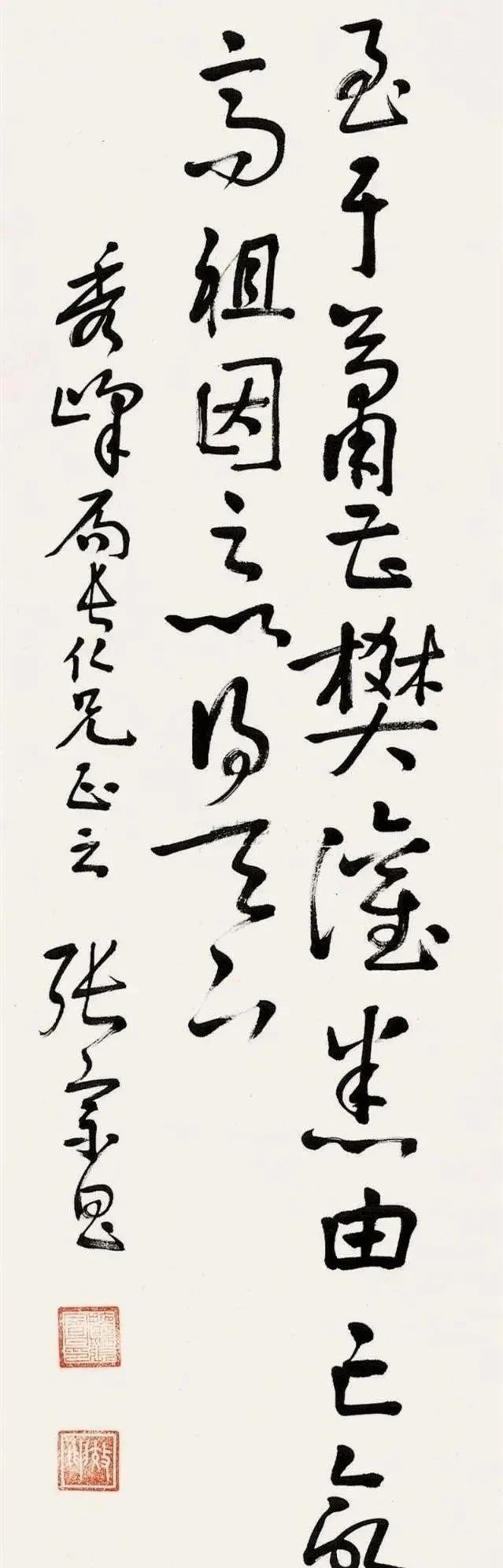 除了行书,张宗昌的草书作品也广为流传。他的草书多为大字作品,笔力苍劲有力,字体壮硕而饱满,展现了一种宏伟和宽厚的美学追求。在张宗昌的草书创作中,还融入了一些章草的笔法,使得其作品在简约朴实中更添了几分沧桑之感。