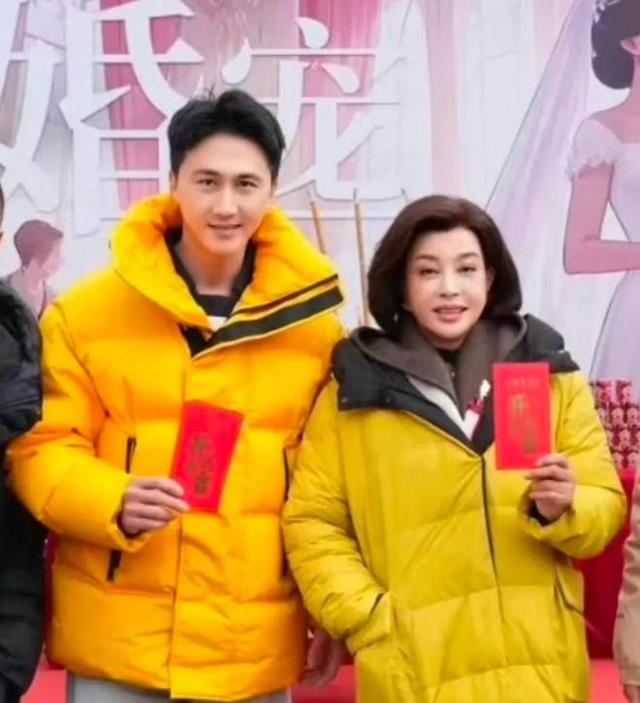 刘晓庆在开机现场,穿着黄色羽绒服,精神状态看起来相当不错,整个人依旧光彩照人。
