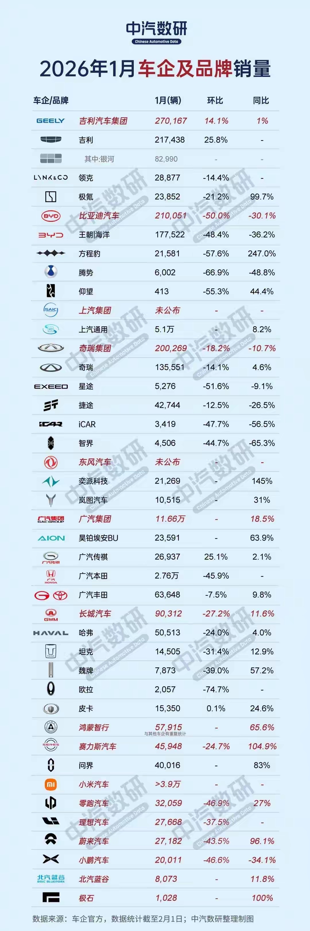 汽车购置税优惠政策调整之后,对新能源汽车的影响确实很大,很多品牌的1月份销量跟12月份相比,环比跌幅都超过40%,相当于砍了近一半。这说明消费者对价格的敏感度还是非常高的,虽然现在30万以内的新能源汽车购置税还可以享受对半优惠,但按照12万左右的新能源汽车来推算,其购置税也达到6000元左右。6000元对于普通消费者,尤其是对于那些连首付都要按最低比例来支付的年轻人来说,其实整体成本还是相对比较高的,因为这种购置税你必须一次性支付,它并不能像汽车款项那样分期,这样一下就提高了大家首付的成本。随着新能源汽车购置税优惠减半,未来大家选择新能源汽车的积极性估计会降低,对应的燃料车反而有可能会重新获取大家的认可,毕竟在购置税减半之后,新能源汽车的价格优势正逐渐减弱。这里也可以从一些燃油车销量的增速看出来,虽然部分燃油车的销量整体也下降,但其降幅明显要比新能源汽车低一些,甚至有一些以燃油车为主的车企销量环比还出现增长了。面对这种调整,估计国内各大汽车厂家还是需要一段时间去适应,并寻求积极的调整措施。至于怎么调整,按照以往的做法,很多汽车可能会通过下调售价来对冲购置税的影响,但是现在国内反内卷比较严肃,再加上存储芯片以及汽车一些原材料价格大幅上涨,很多主机厂已经没有了太多的降价空间,所以短期内其实并没有很好的解决办法,唯一能做的就是要不断提高产品的质量,提高产品的市场认可度,这才是赢得客户长期认可的基础。