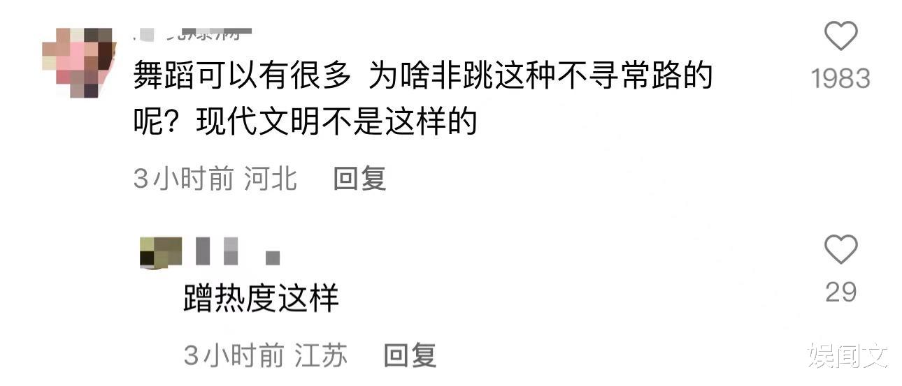 还有网友提出质疑,明明舞蹈有很多种表现方式,为何非要跳这种不同寻常的动作,现代文明不是这样的。有人则认为他们跳这样的动作就是为了蹭热度,博眼球。